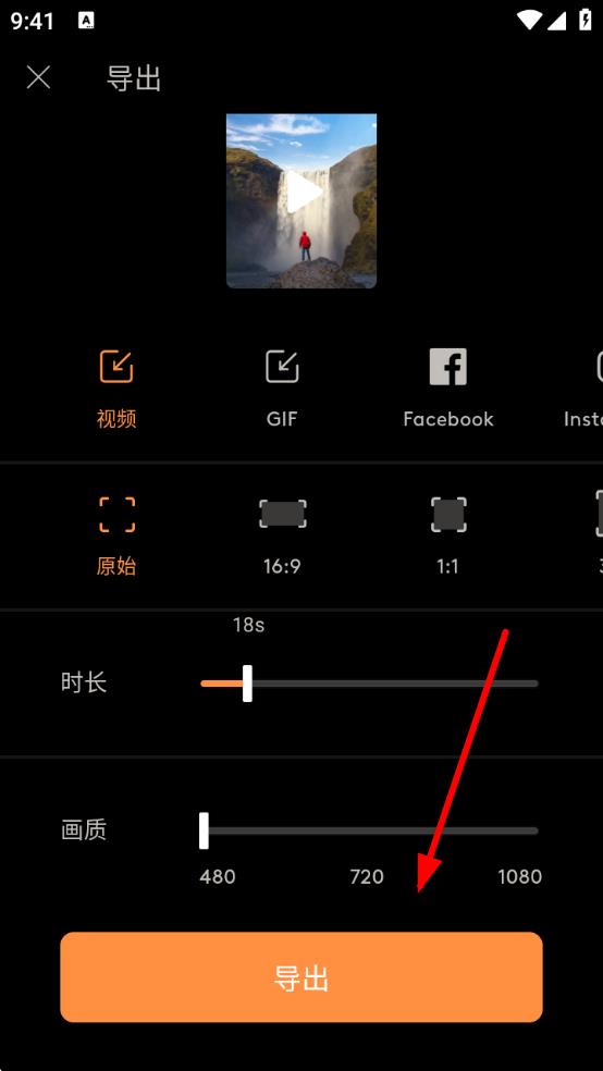 2、在導(dǎo)出設(shè)置頁面,選擇導(dǎo)出的格式、分辨率等參數(shù)后,再次點(diǎn)擊下方的導(dǎo)出按鈕,等待導(dǎo)出完成。