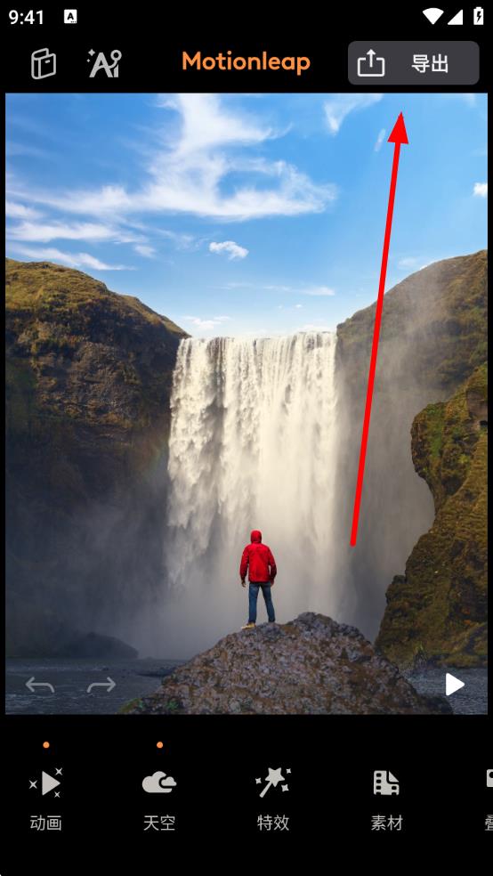 1、在Motionleap中完成圖片編輯后,點(diǎn)擊界面右上角的導(dǎo)出按鈕,進(jìn)入導(dǎo)出設(shè)置頁面。