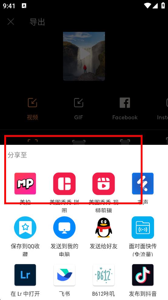 3、導(dǎo)出完成后,會彈出分享界面,可選擇將處理后的照片分享至相應(yīng)的平臺,或者保存到手機(jī)相冊等位置若要再次導(dǎo)入照片進(jìn)行編輯。