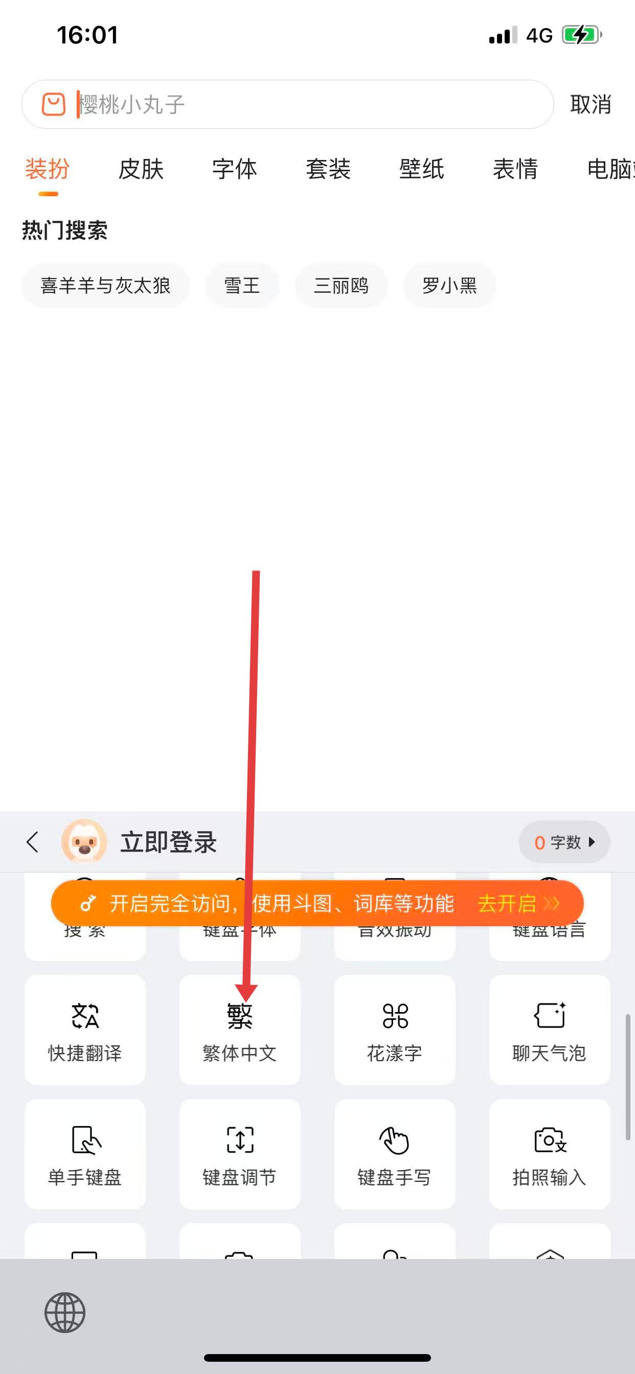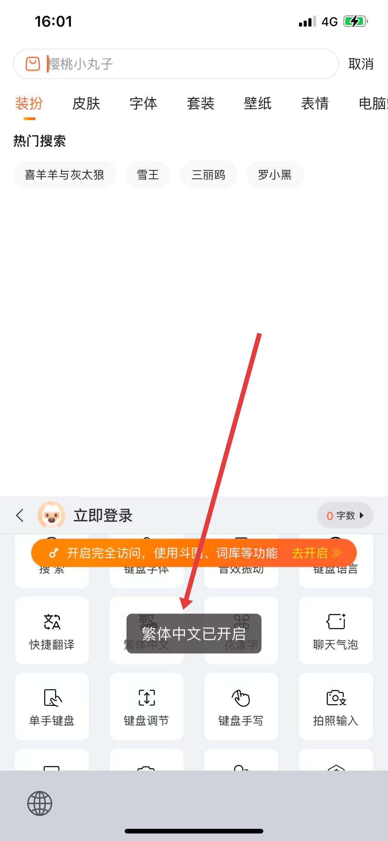 3、點擊繁體選項,開啟后輸入文字即默認(rèn)以繁體字顯示。