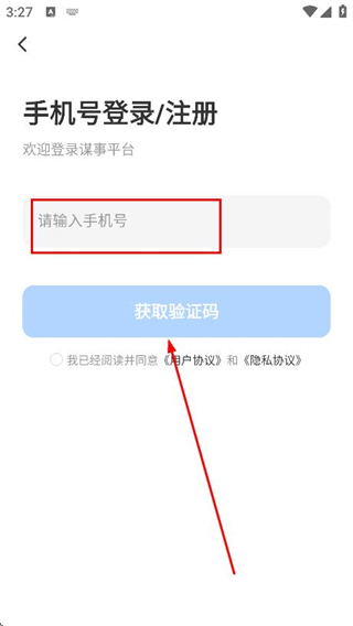 3、進(jìn)入登錄頁面,輸入手機(jī)號,點(diǎn)擊獲取驗證碼。