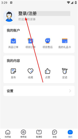 1、打開謀事app,點(diǎn)擊底部導(dǎo)航欄的我的選項。