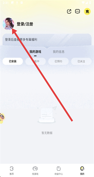 2、在進(jìn)入到我的主頁(yè)后,可以點(diǎn)擊頭像區(qū)域準(zhǔn)備進(jìn)行登錄操作。