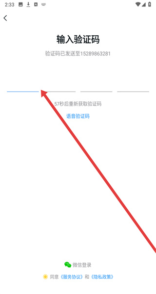 4、在輸入驗(yàn)證碼頁(yè)面中,點(diǎn)擊輸入框輸入獲取到的驗(yàn)證碼后,即可完成賬號(hào)登錄操作。