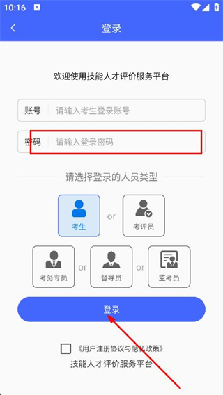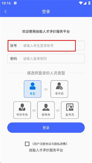 2、進入登錄頁面后,在賬號輸入框中,輸入考生登錄賬號。