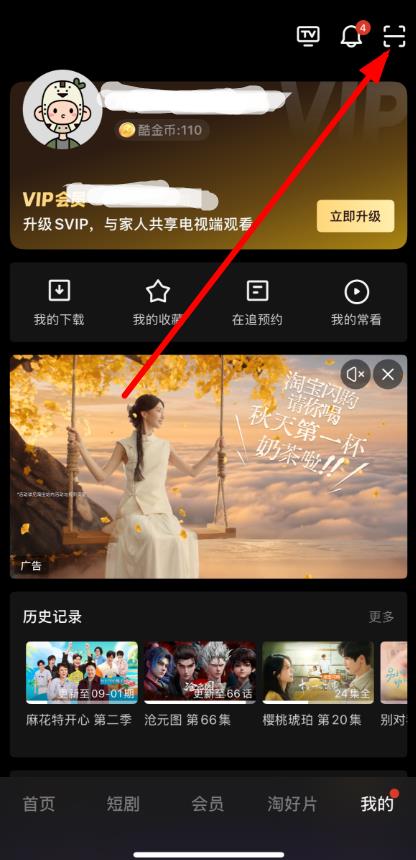 2、在個人頁面右上角,點擊類似方框疊加的掃一掃圖標(biāo)。