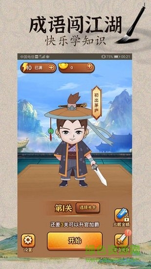 成語闖江湖app賺錢抽手機(jī)在游戲中選擇自己喜歡最新闖關(guān)道具,讓你輕松的完成更多冒險活動,游戲中你每天都能體驗更多精美的成語闖關(guān)任務(wù),輕松的就能完成更多舒適的答題通關(guān)。喜歡就來網(wǎng)站下載吧!