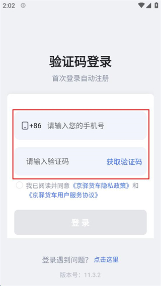2、在登錄界面輸入手機(jī)號(hào)碼,點(diǎn)擊獲取驗(yàn)證碼,輸入收到的驗(yàn)證碼。