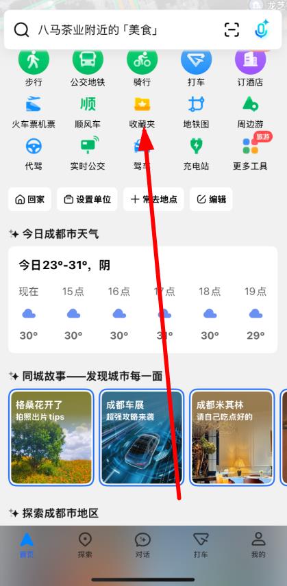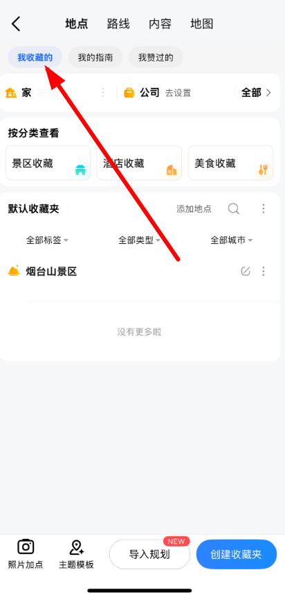 3、進入收藏夾頁面后,點擊我收藏的,即可查看已收藏的地點等相關(guān)內(nèi)容。