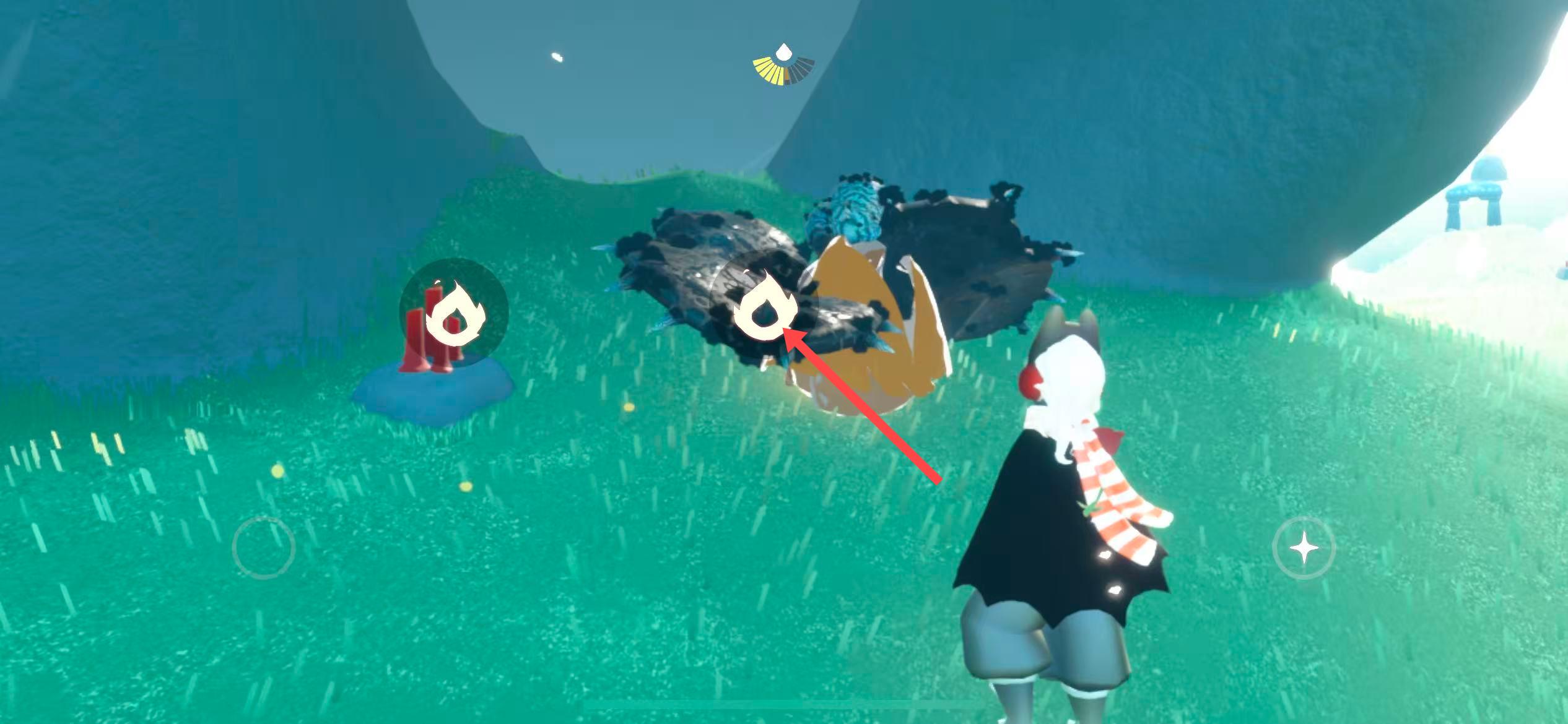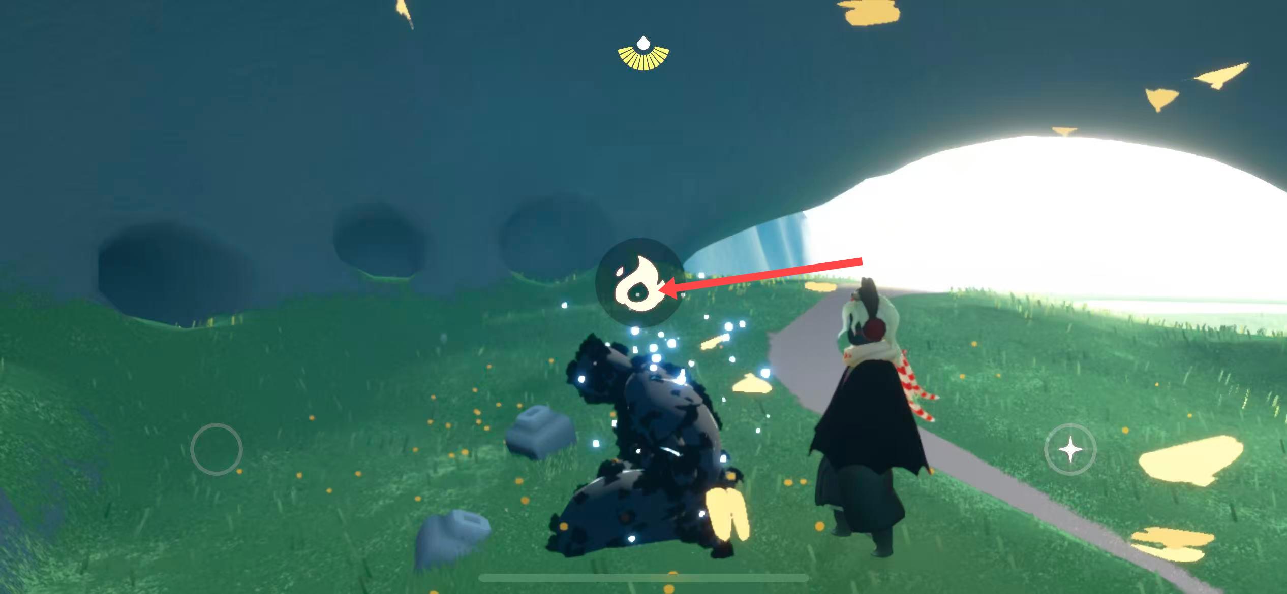 3、靠近先祖石像,點擊先祖頭上的點火標志,即可收集先祖。
