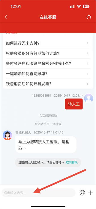4、在輸入框中輸入問題,即可與人工客服進行溝通。