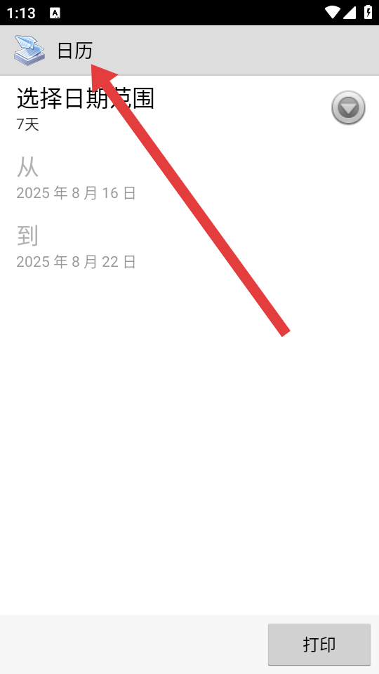 3、打開日歷頁面,選擇日期范圍默認7天可調(diào)整,設置從需要打印的日期,點擊打印生成對應時間范圍的日歷內(nèi)容。