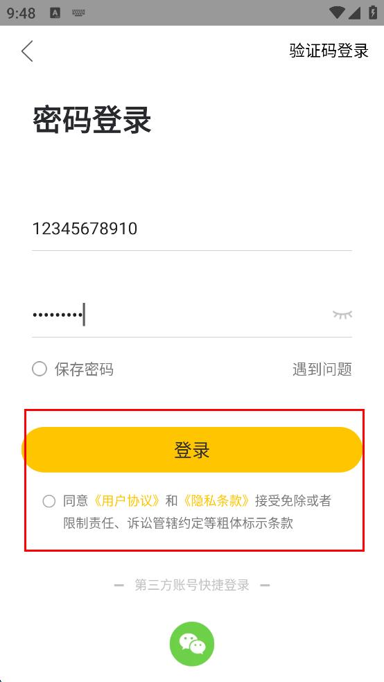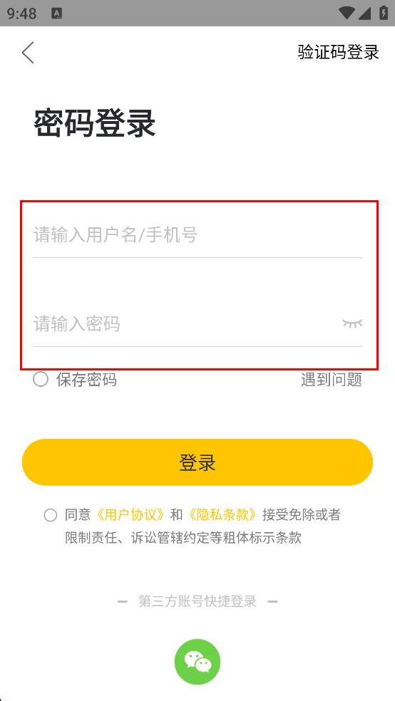 3、進入密碼登錄頁面,在頁面輸入用戶名/手機號以及密碼。
