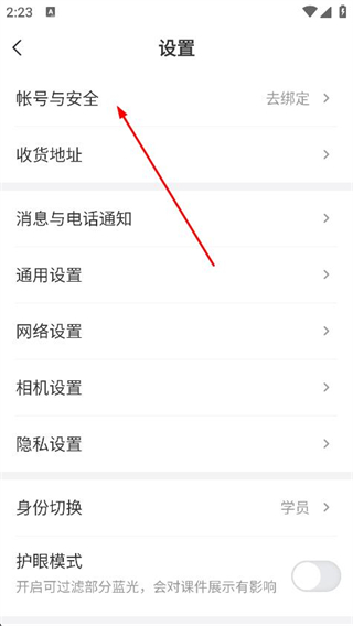 3、進(jìn)入設(shè)置頁面后,點擊帳號與安全選項。