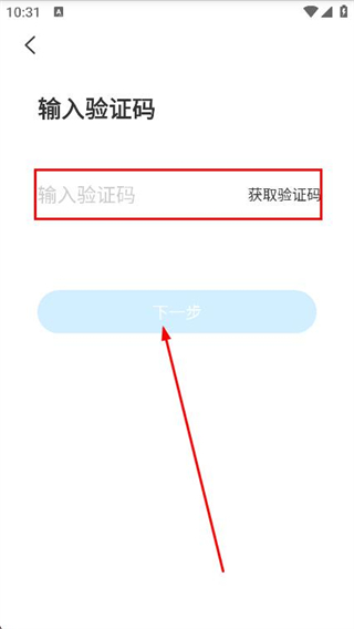 3、在驗證碼頁面,點擊獲取驗證碼,填入驗證碼,點擊下一步。