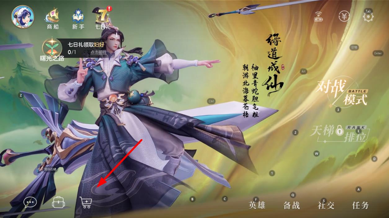 1、在游戲首頁界面中,可以看到下方類似購物車的圖標,點擊進入商城界面。