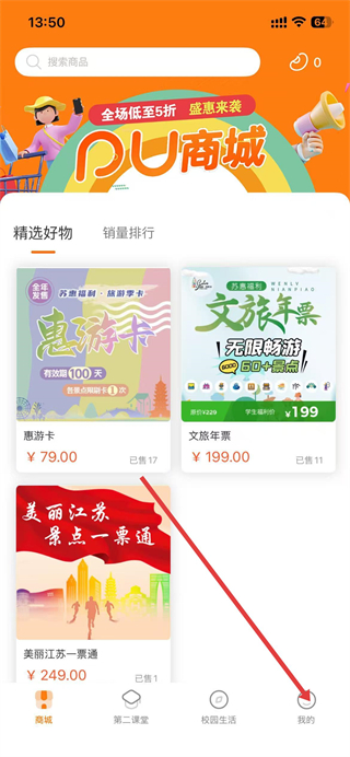 1、打開PU口袋校園,點(diǎn)擊底部導(dǎo)航欄我的選項(xiàng)。