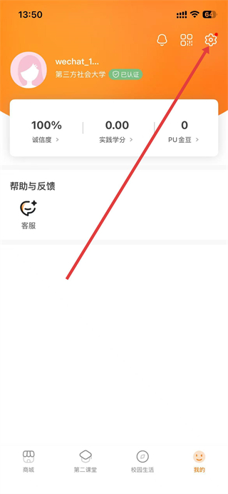 2、在我的頁面,找到并點(diǎn)擊右上角的設(shè)置圖標(biāo)。