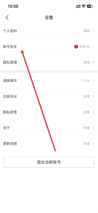 3、在設(shè)置頁面中,找到并點(diǎn)擊賬號安全選項(xiàng)。