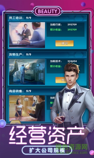 在視、聽、玩全方位,把玩家代入到富豪大亨的身份,調(diào)教員工,豪車美酒,美女相伴,多角度逼真模仿商業(yè)霸主的奢華生活。