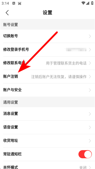 2、在設(shè)置的頁面,需要點擊賬戶注銷,進(jìn)入賬戶注銷說明的頁面。