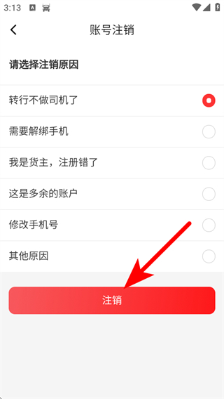 4、在注銷原因選擇頁面,選擇原因后點擊注銷,完成賬號注銷操作。