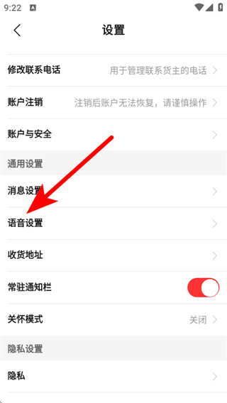 2、在設(shè)置頁面中找到并點擊語音設(shè)置,進(jìn)入語音設(shè)置的頁面。