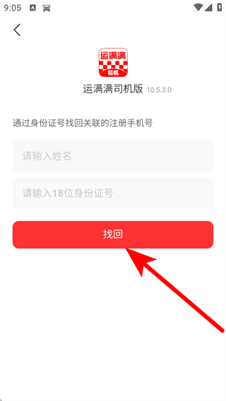 4、在該頁面輸入姓名和18位身份證號,點擊找回,即可完成賬號找回操作。