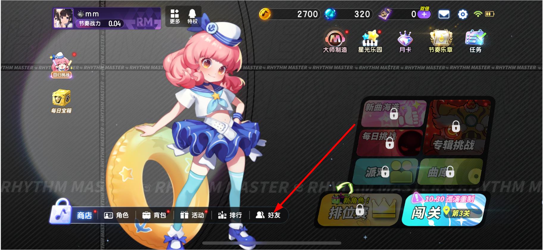 1.打開節(jié)奏大師游戲,點擊界面下方開始游戲進入游戲主界面。