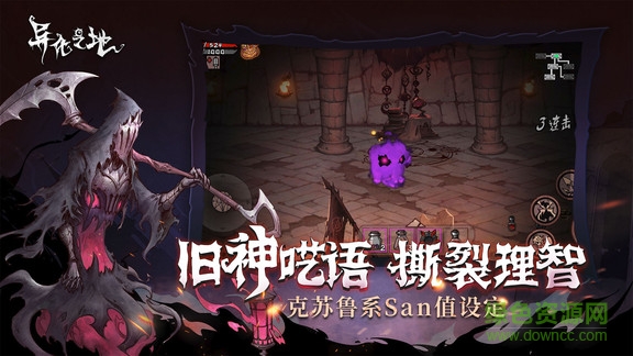 異化之地引入了克蘇魯跑團游戲中的san值(理智值)設定,每次服用瘋狂之血后都會降低理智值,理智值降低將會降低攻擊力、提高遇到不好情況的概率等(點擊左上角標志即可查看當前狀態(tài)),并且有概率出現(xiàn)限制視野的效果。通過服用鎮(zhèn)靜劑就可以恢復。