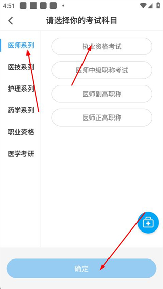 3、在頁面中選擇對應(yīng)考試系列及具體考試類型后,點擊確”即可完成設(shè)置。