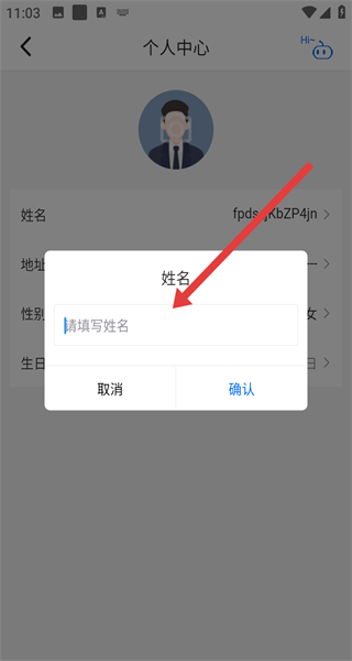 3、在個(gè)人信息編輯界面,點(diǎn)擊姓名欄,彈出姓名輸入窗口。