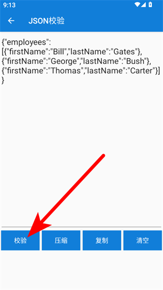 3、在JSON校驗界面,輸入需要校驗的JSON內(nèi)容,點擊校驗按鈕。