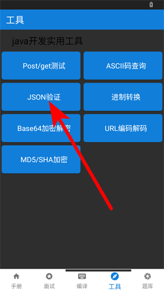 2、在工具功能頁面,點擊JSON驗證選項,進(jìn)入JSON校驗界面。