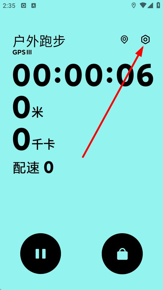3、進(jìn)入運(yùn)動計(jì)時界面后,點(diǎn)擊界面右上角的設(shè)置圖標(biāo)。