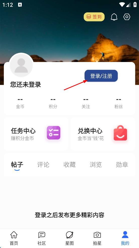 2、在首頁,點擊右下角“我的”,進入個人頁面,看到“您還未登錄”提示后點擊“登錄/注冊”。