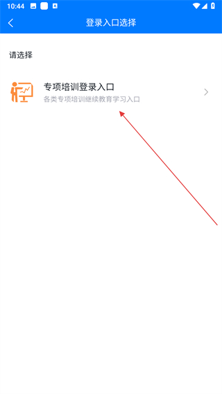 2、在個人中心頁面,選擇專項培訓登錄入口。