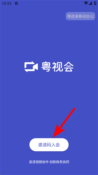 1、打開粵視會(huì)APP,點(diǎn)擊邀請(qǐng)碼入會(huì),進(jìn)入加入會(huì)議頁(yè)面。