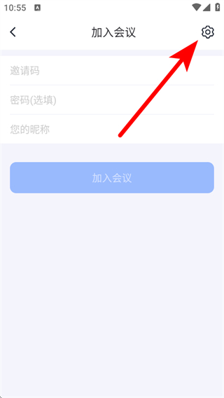2、在加入會(huì)議頁(yè)面,點(diǎn)擊右上角的設(shè)置圖標(biāo),進(jìn)入設(shè)置界面。