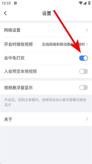 3、在設(shè)置界面,找到會(huì)中免打擾選項(xiàng),將其開關(guān)開啟。