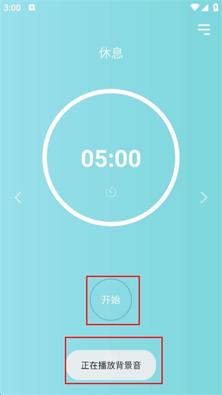 3、設(shè)置好背景音后,點(diǎn)擊開(kāi)始按鈕,啟動(dòng)休息計(jì)時(shí)。