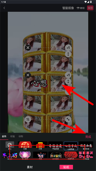 4、編輯完成后,點(diǎn)擊頁(yè)面下方的完成按鈕,再根據(jù)提示進(jìn)行保存或分享操作,即可完成視頻制作。