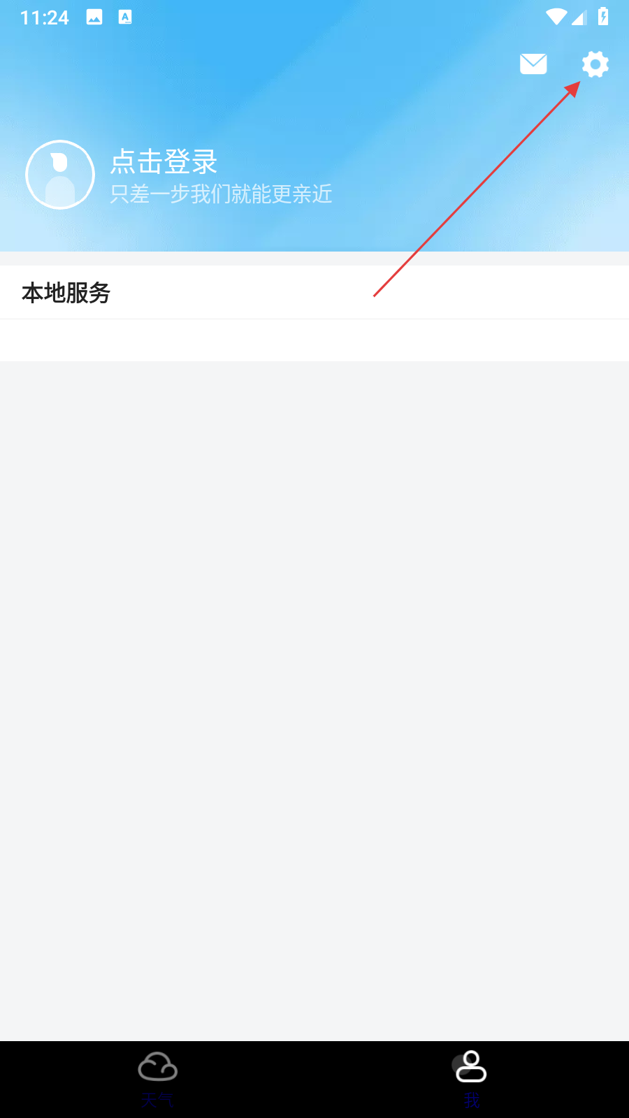 1、打開精準天氣預報應用,進入個人頁面,再點擊右上角齒輪形狀的設置圖標,進入軟件設置頁面。