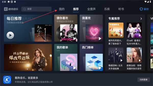 1、打開酷狗音樂APP,進入首頁內(nèi)點擊我的按鈕。