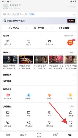 2、進入到首頁內(nèi),向下滑動找到并點擊設(shè)置的功能按鈕。