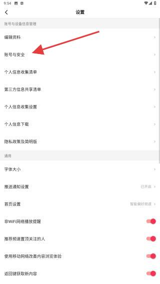 3、在設(shè)置的界面內(nèi),點擊賬號與安全的按鈕。