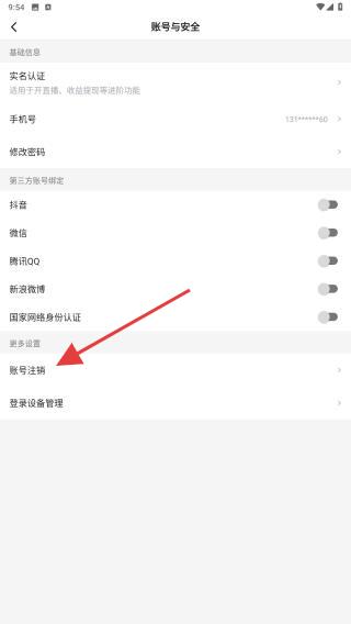 4、進入賬號與安全的頁面內(nèi),點擊賬號注銷的按鈕即可。