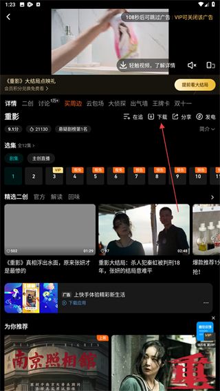 3、進(jìn)入播放的頁(yè)面內(nèi),點(diǎn)擊播放下方下載的功能按鈕。