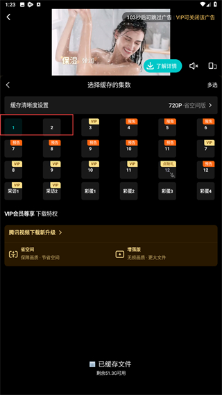 4、在下方彈出劇集的頁(yè)面,選擇并滑動(dòng)可一并下載集數(shù)。