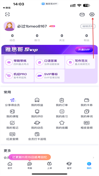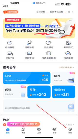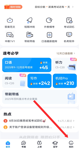 1、在雅思哥的首頁,需要點擊底部我的按鈕,進入個人的頁面。